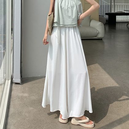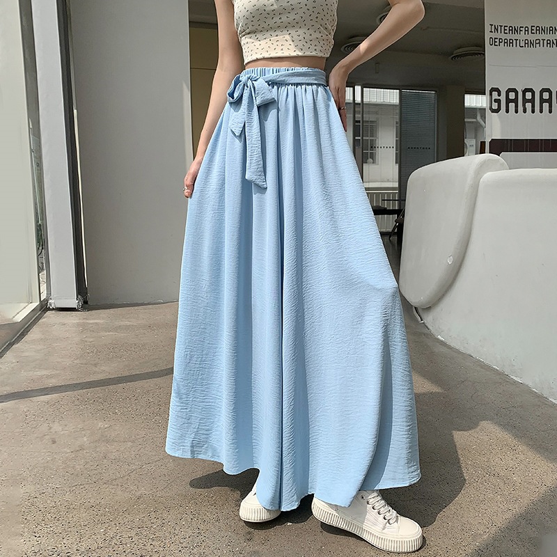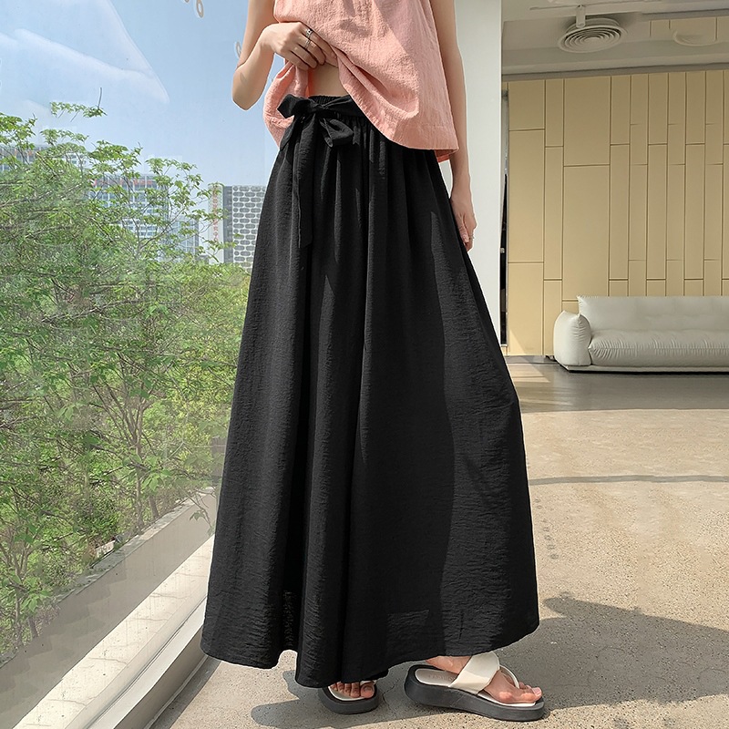 Real shot ice silk cotton and linen lace-up wide leg pants summer thin cropped lazy Yamamoto pants high waist slim casual culottes