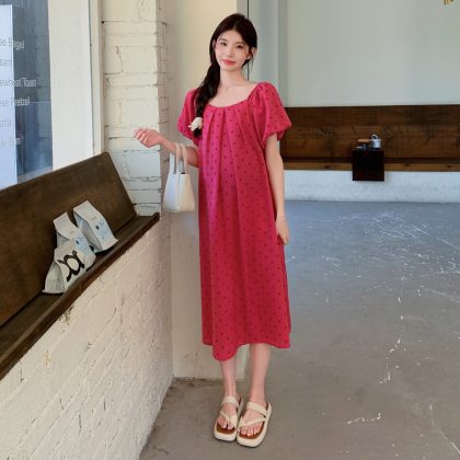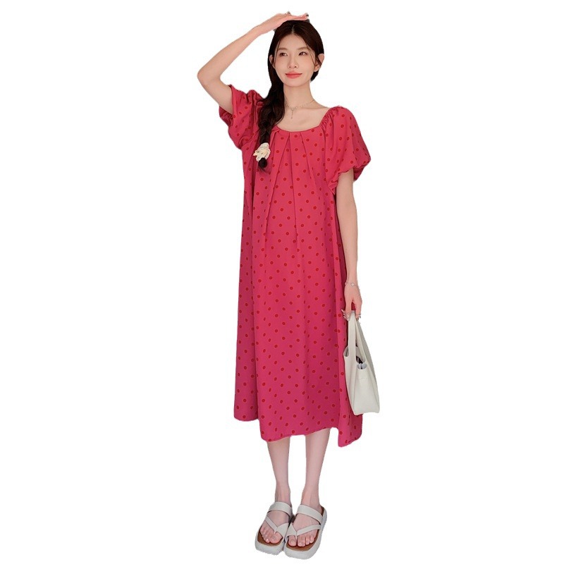 Real shot in stock 2024 summer new wave point pregnant mother version temperament high sense retro pregnant women long dress