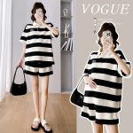 | nameOriginal | Real shot in stock Embroidered striped polo collar top + belly support pants suit |