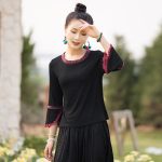 Real shot in stock ethnic style spring and summer embroidered modal slim-fit slimming outerwear top bell sleeve t-shirt