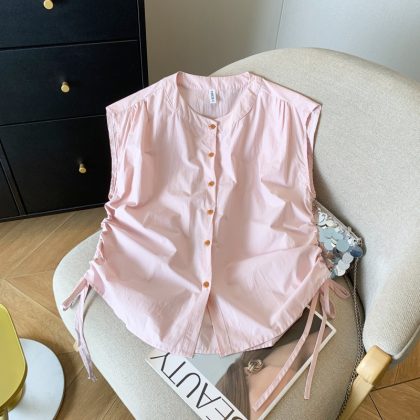 | nameOriginal | Real Shot in stock Korean Style Gentle Style All-match Shirt Women's Summer Design Pleated Loose Drawstring Sleeveless Top |