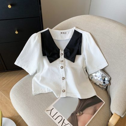 | nameOriginal | Real Shot in stock Summer New Doll Collar Stylishness Age-reducing Bubble Short-sleeved Design Sense Niche All-match Short-sleeved Shirt |