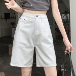 لقطة حقيقية في المخزون شورتات دينم بيضاء للنساء صيفية رفيعة وخصر عالي وفضفاضة للتخسيس وساق مستقيمة وواسعة الساق