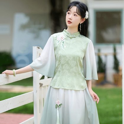 | nameOriginal | Real shot new Chinese retro modified cheongsam women's Tang suit association lapel Chinese embroidery Chinese button top suit |