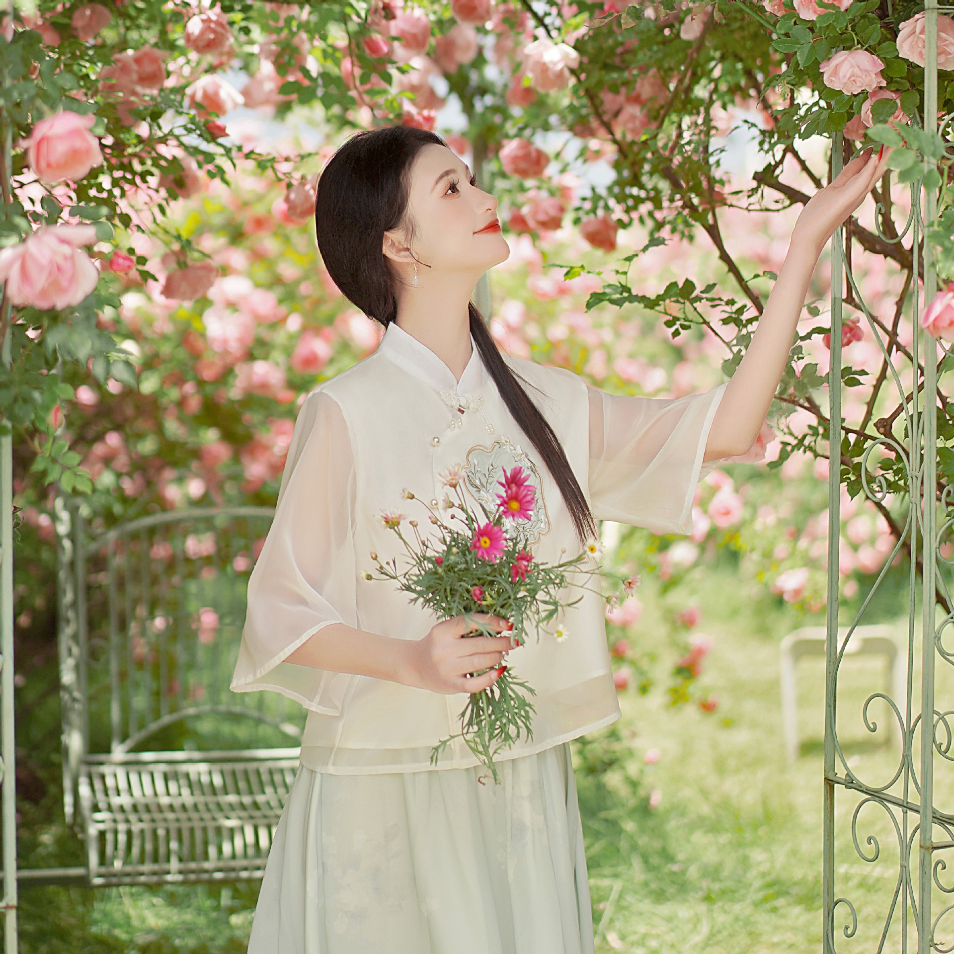 | nameOriginal | Real Shot New Chinese Style National Style Improved Cheongsam Embroidered Half Sleeve Top Tea Clothing Fairy Style Retro Art Girl suit |