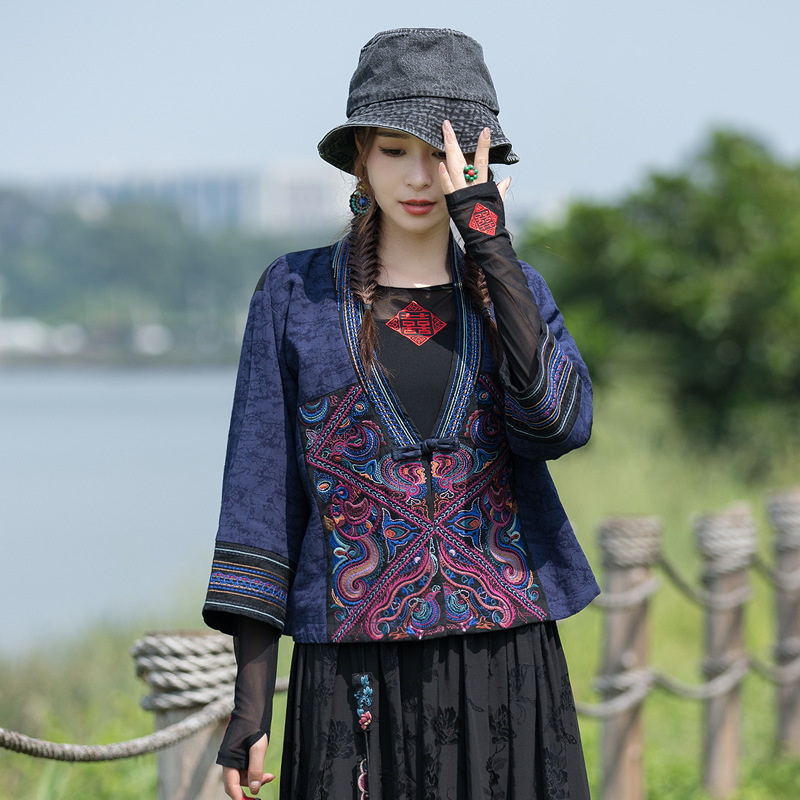 | nameOriginal | Real shot new heavy cotton and linen embroidered seven bat-shaped loose ethnic style retro small coat |