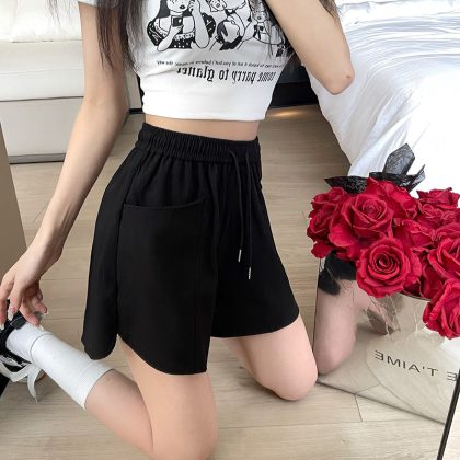 Real Shot plus size Women's 2024 Summer New High Waist Slim Sports Shorts Loose All-match Wide Leg Shorts