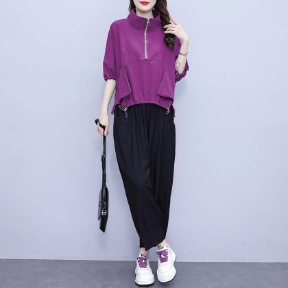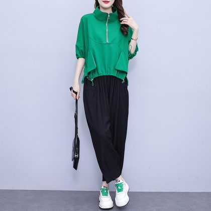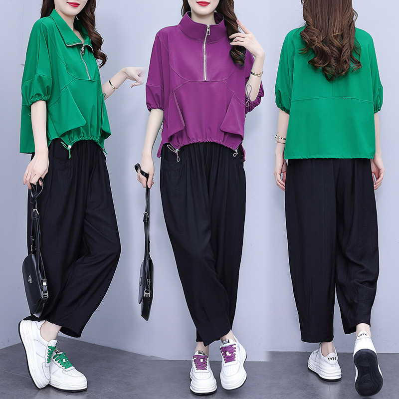 | nameOriginal | Real Shot Spot Large Size Fashionable Loose Belly Covering Drawstring Zipper Pocket Top Harlan Pants Two-piece 2024 Summer |
