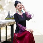 Real Shot Spring and Summer New Ethnic Style Embroidered Round Neck Stitching Contrast Color Ruffled Top Mid-Sleeve Pullover T-Shirt