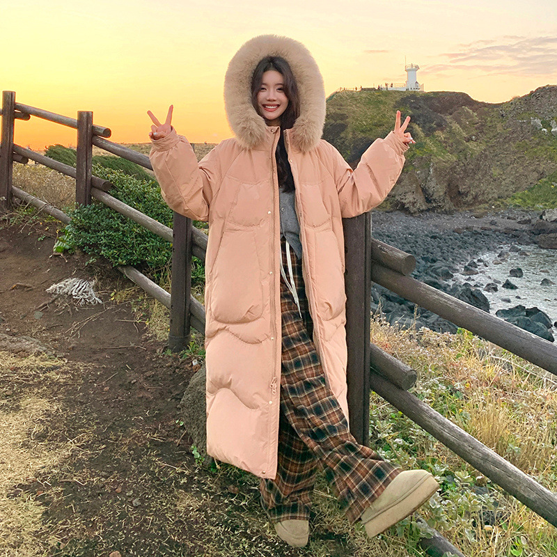 | nameOriginal | Real shot stand collar hooded large fur collar slimming loose large pocket gentle age-reducing orange pink down jacket long coat for women |