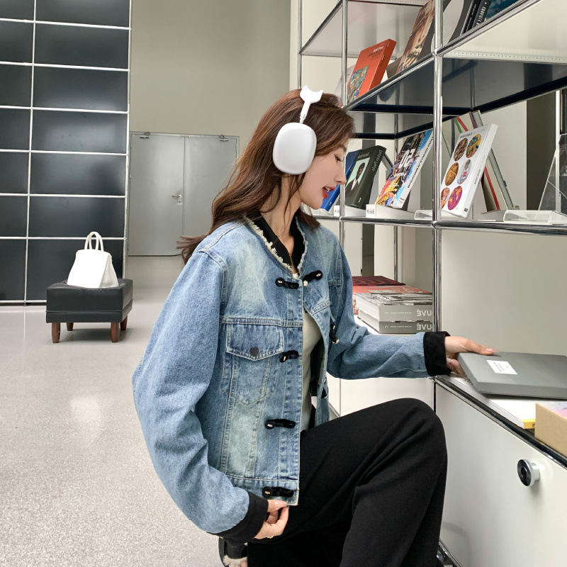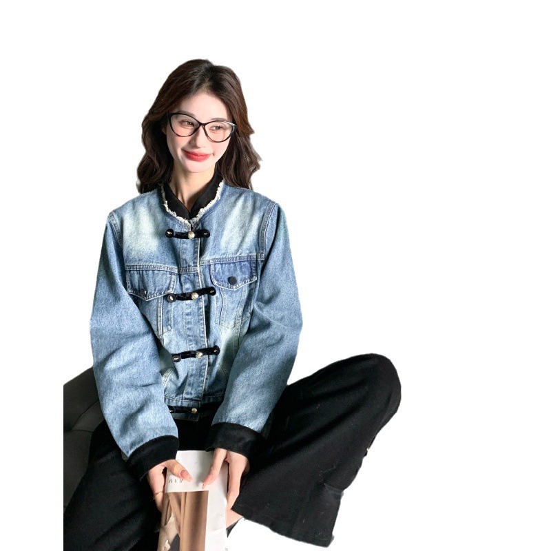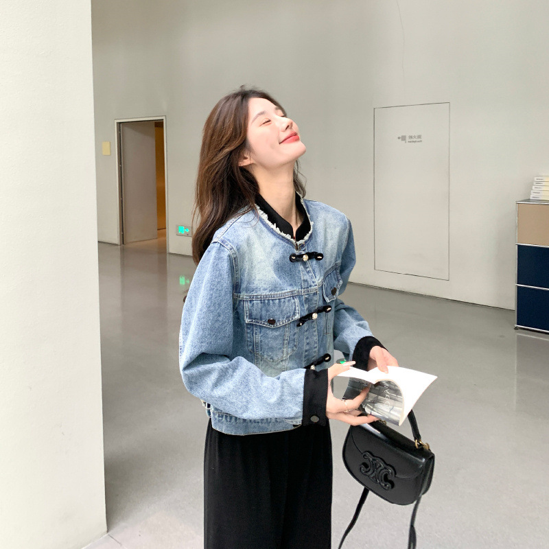 | nameOriginal | Real shot stand collar loose patchwork design sweet cool new Chinese style buckle short slimming retro all-matching Denim coat for women |