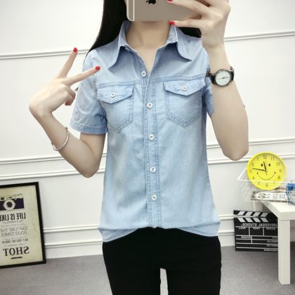 | nameOriginal | Real shot Summer new Denim shirt women's short sleeve plus size slim fit all-match denim thin |