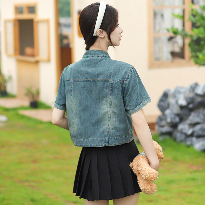 سترة ريل شوت صيفية جديدة على الطراز الوطني بإبزيم ورباط وتصميم غير منتظم من قماش الدنيم للنساء