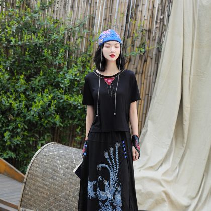 | nameOriginal | Real shot summer short sleeve ethnic style knitted embroidered linen T-shirt versatile top commuter round neck loose half sleeve |