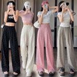 سراويل Real Shot Wave Dot واسعة الساق للسيدات صيفية عالية الخصر ثنى كاجوال كسول الرياح الحرير الجليدي سراويل ياماموتو من القطن والكتان سراويل غير رسمية