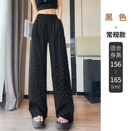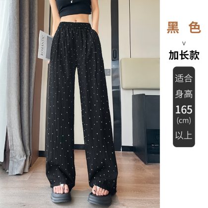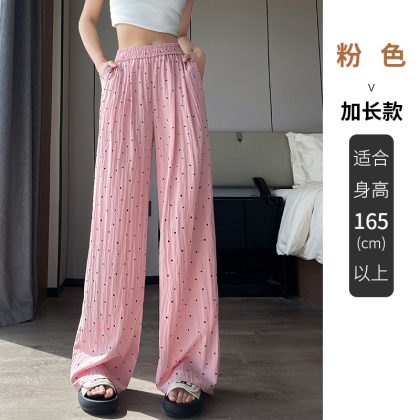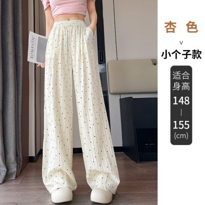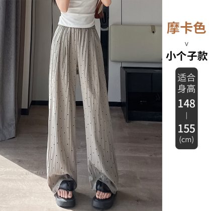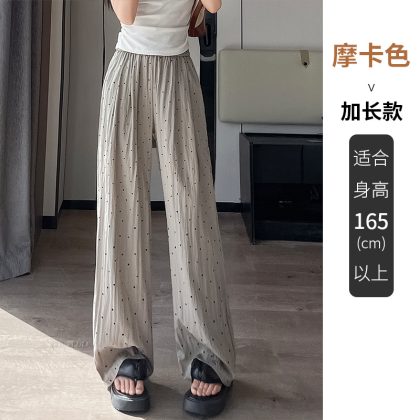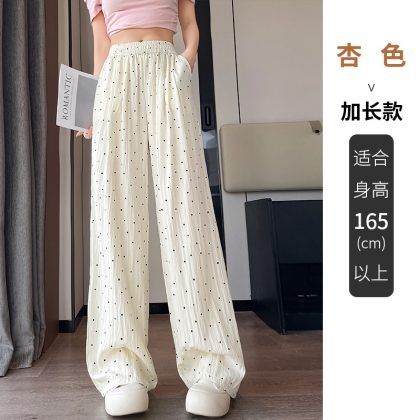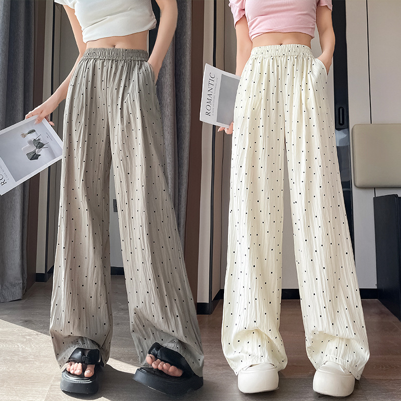 Real shot wave dot wide leg pants women's summer high waist drape casual lazy wind ice silk Yamamoto pants cotton and linen casual pants