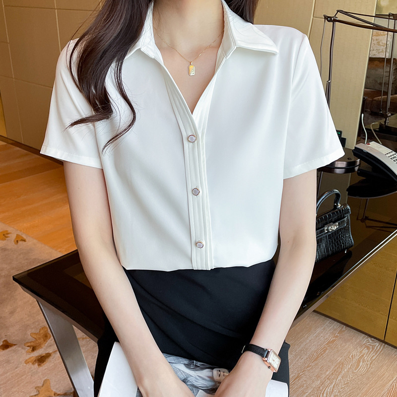 | nameOriginal | Real Shot White Short-sleeved Shirt Women's Design Niche 2024 Summer New French V-neck Shirt |