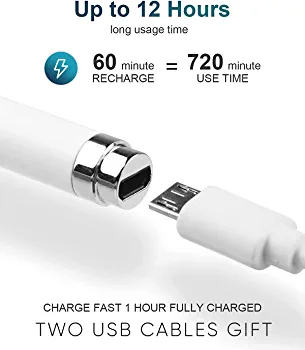 تتضمن الحزمة قلم ستايلس نشط واحد وكابلي شحن مايكرو يو اس بي ودليل مستخدم. متوافق مع مجموعة واسعة من الأجهزة، بما في ذلك آيباد 2/3/4، وآيباد ميني 4، وآيباد برو 9.7/10.5/12.9، وآيفون 4/4S، وآيفون 5/5S/5SE، وآيفون 6/6S/6Plus/6S Plus، وآيفون 7/7S/7Plus، وآيفون 8/8Plus، وآيفون 11/12/برو/برو ماكس، والمزيد.