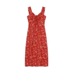 | nameOriginal | Red floral seaside resort style slimming suspender skirt |