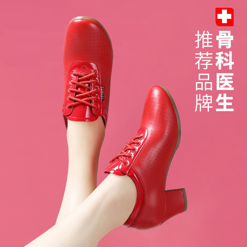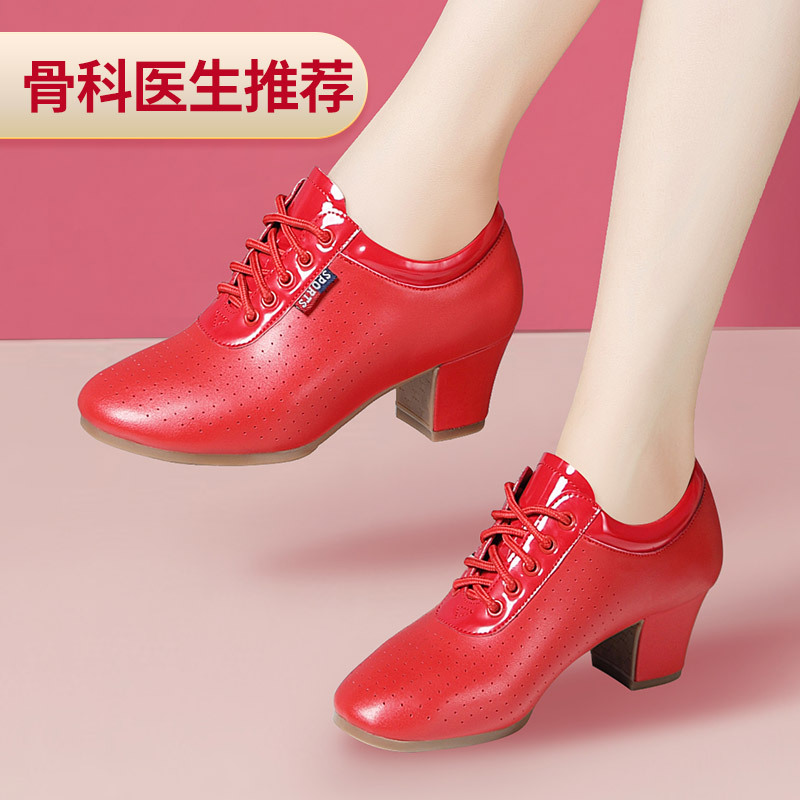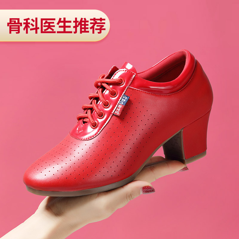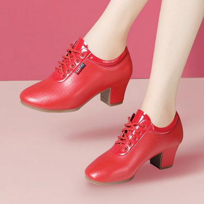 | nameOriginal | Red genuine leather professional Latin dance shoes mid-year chunky heel teacher shoes soft bottom body ballroom dance square dance shoes for women |