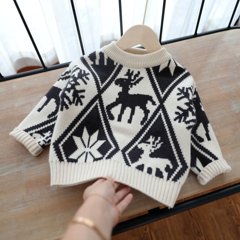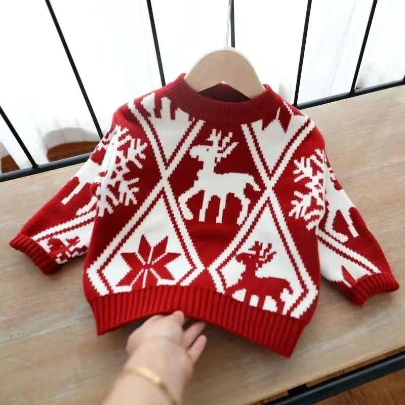 سترة رأس السنة الحمراء الجديدة سترة سميكة جديدة للأولاد والبنات قميص سفلي من الصوف الدافئ للشتاء 0209A012