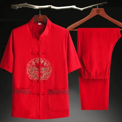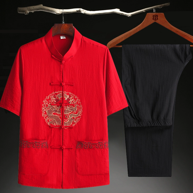 | nameOriginal | Red Plus Size Medium Sleeve Loose Top Tang Suit |