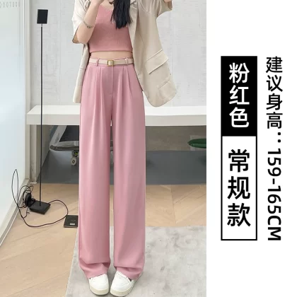 Red suit pants for women spring and autumn 2024 new high-waist drape casual slim wide-leg pants straight-leg floor-length trousers