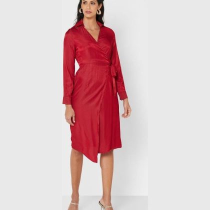 | nameOriginal | Button Detail Belted Wrap Dress Red |
