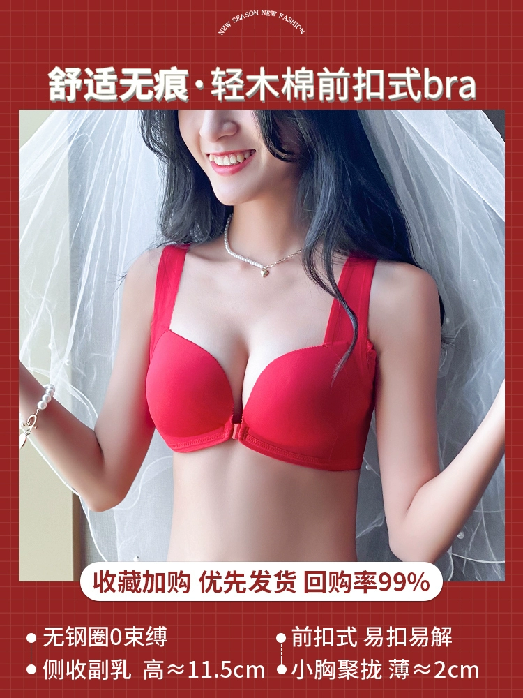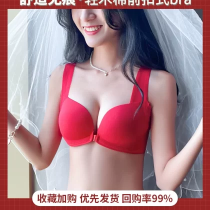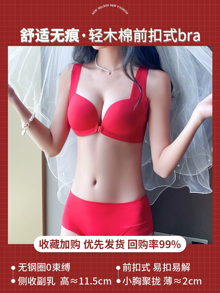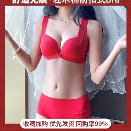 | nameOriginal | Red zodiac year underwear for women with small breasts, push-up wedding bride, front buckle, no steel ring, traceless bra and underwear set |