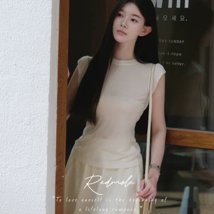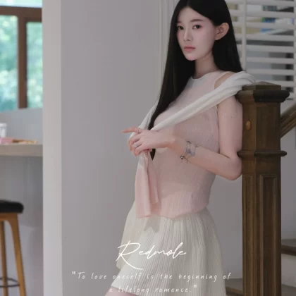 | nameOriginal | Redmole pink and white blend pleated skirt suit vest |