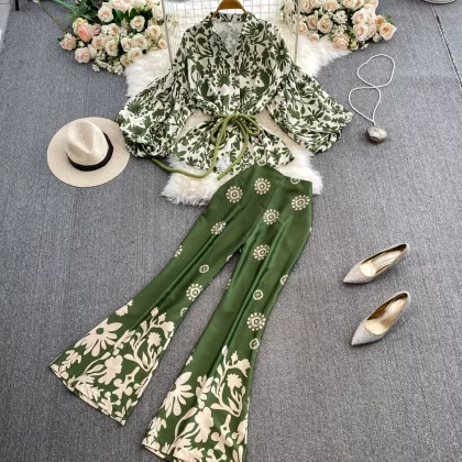 | nameOriginal | Reducing age with a set of Korean green trousers summer dress |