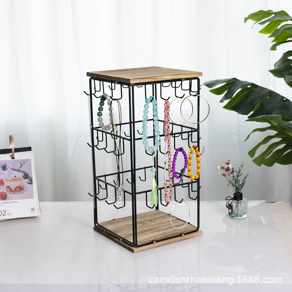 | nameOriginal | Removable Square Jewelry Display Stand Wrought Iron Wooden Base Quadrilateral Jewelry Earrings Earrings Display Storage Stand |