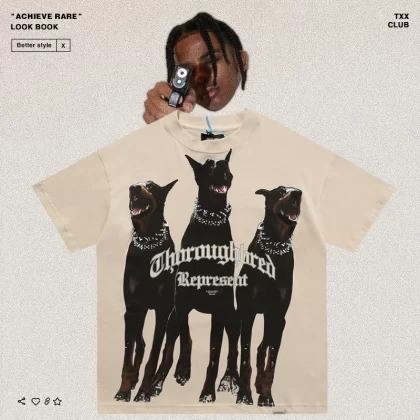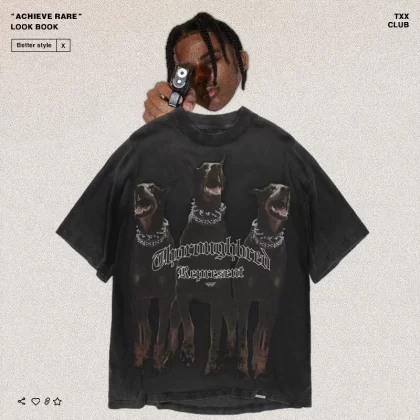 يمثل تي شيرت دوبيرمان بينشر ذو الأكمام القصيرة المغسولة في الشارع