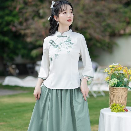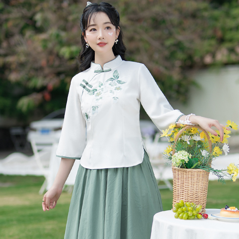 | nameOriginal | Republic of China Women's Clothing Improved Tang Suit Top Skirt Suit Cheongsam Han Clothing Tea Art Clothing Ear Pocket Teacher's Clothing Retro |