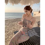 حزام حمالات متوسط ​​الطول مخطط بقوس قزح على طراز المنتجعات