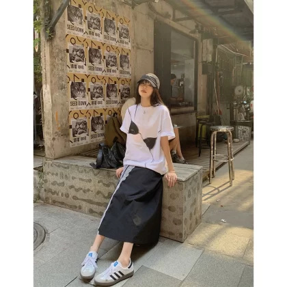 | nameOriginal | Resort style lace stitching high waist printed short-sleeved T-shirt |