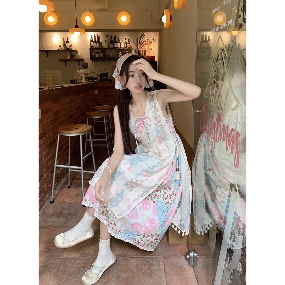 | nameOriginal | Resort style summer layered tassel mesh floral suspender belt |