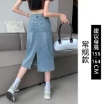 | nameOriginal | Retro back slit spring mid-length denim skirt |