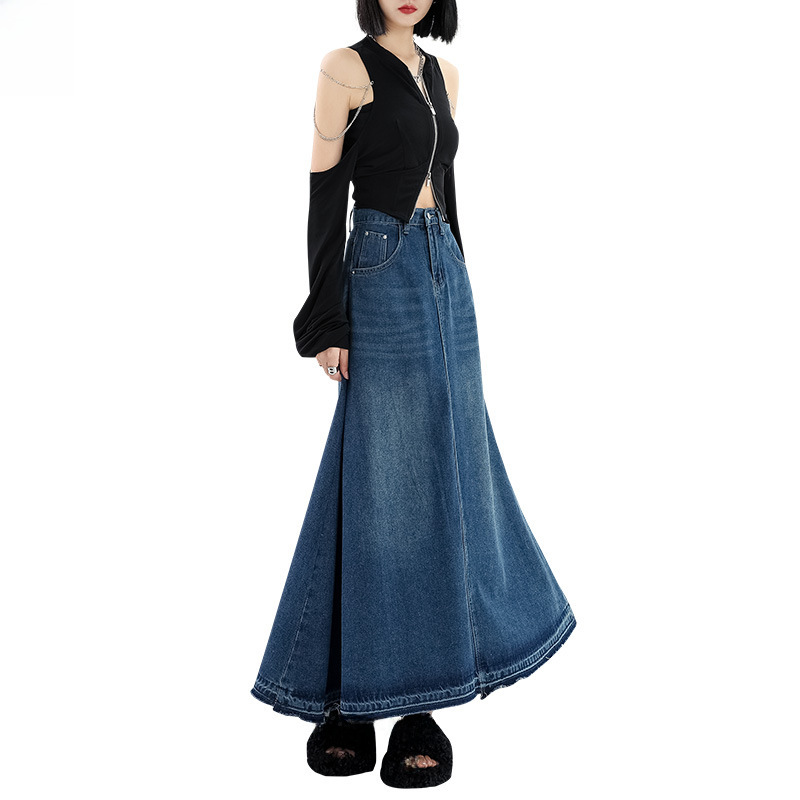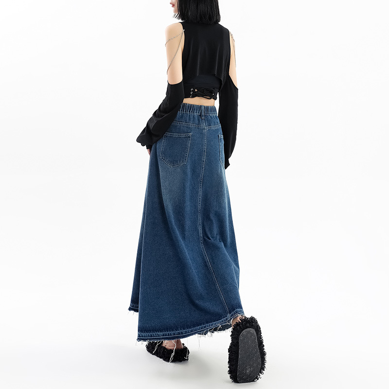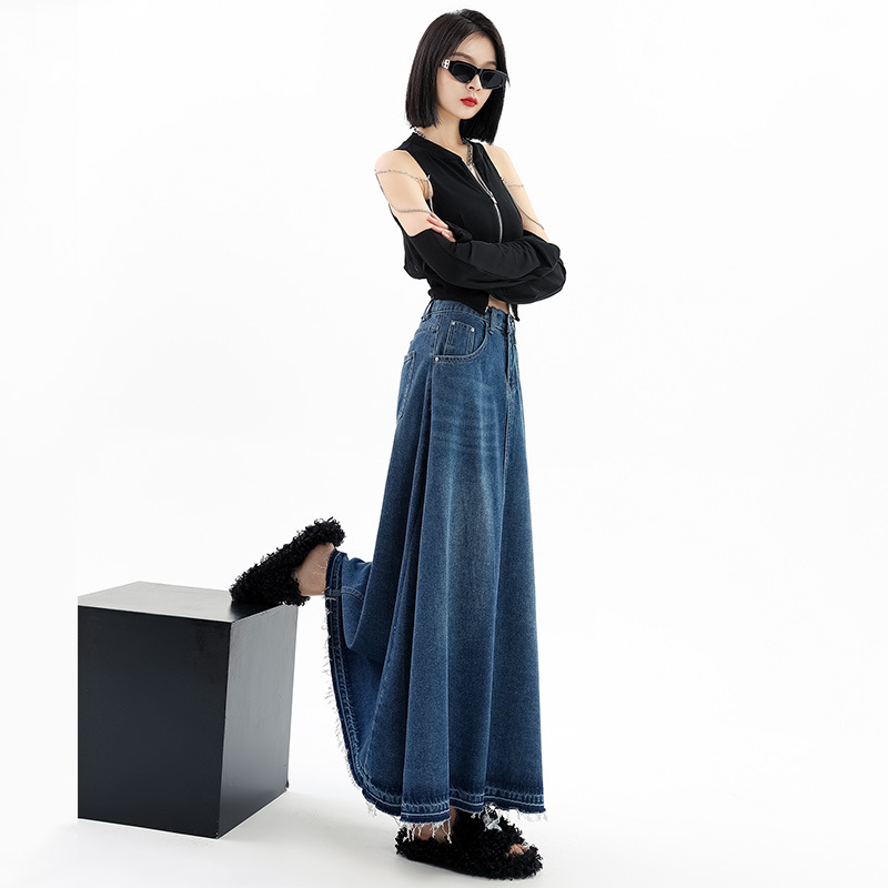 | nameOriginal | Retro blue elegant all-match Denim long skirt women's tassel edge niche design sense slimming slimming skirt |