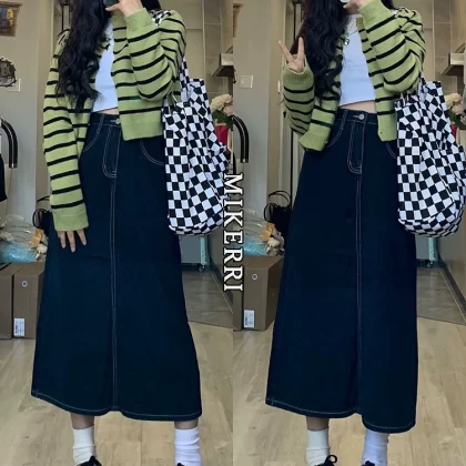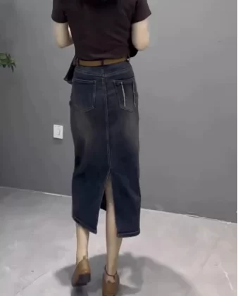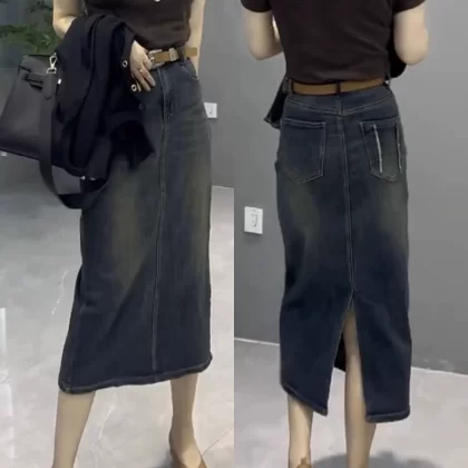 | nameOriginal | Retro blue large size straight a-line denim skirt |