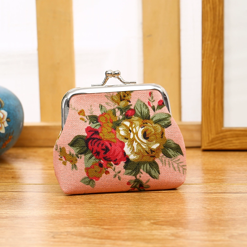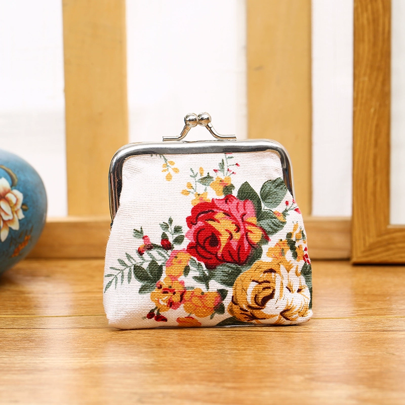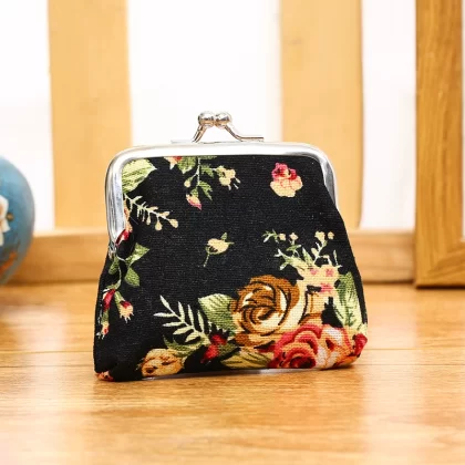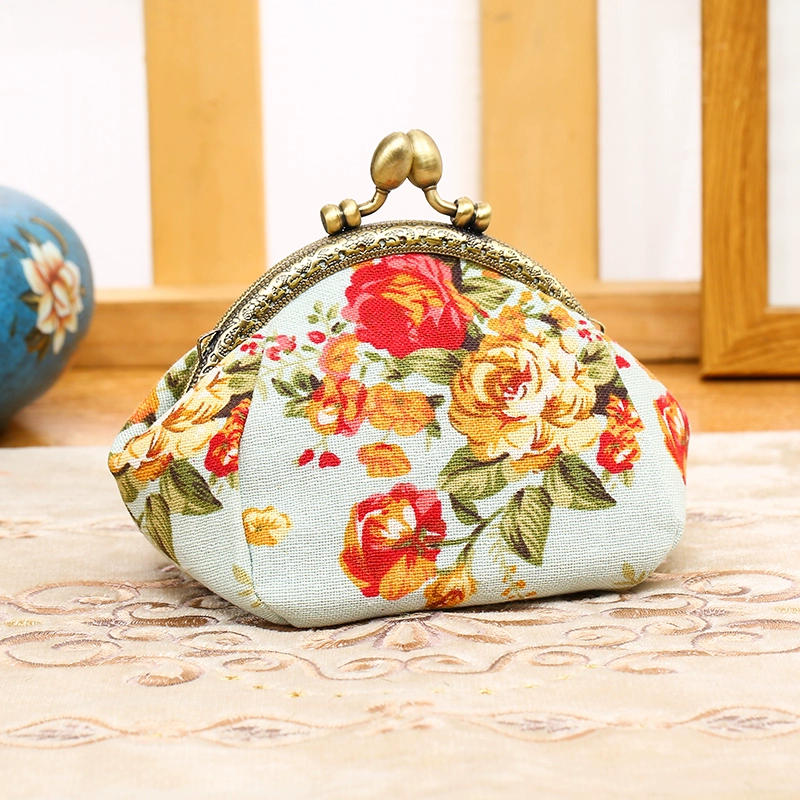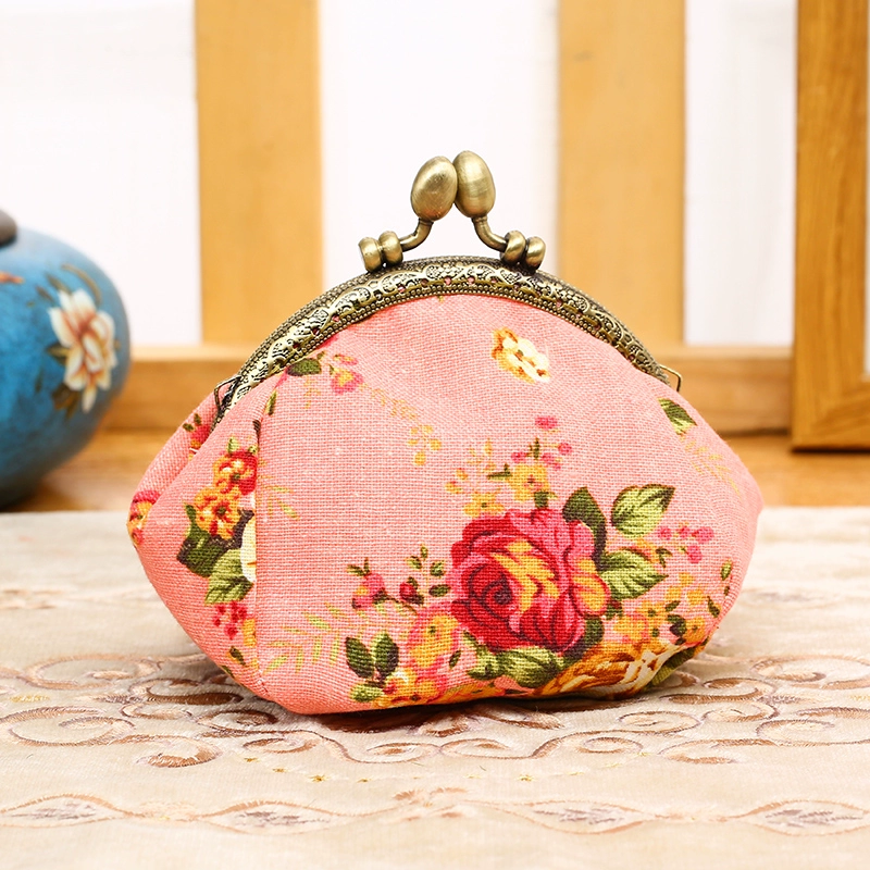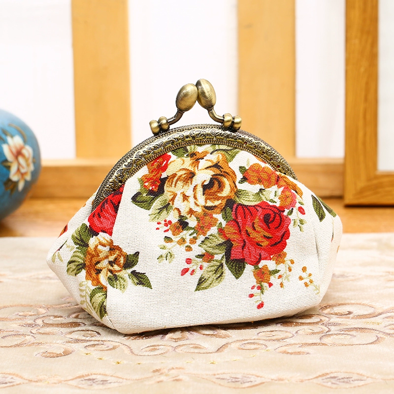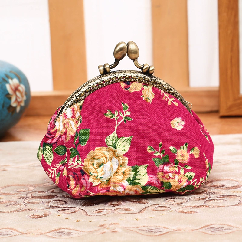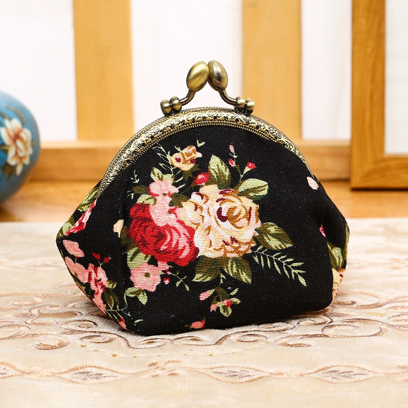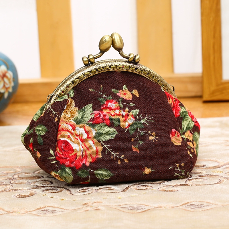 | nameOriginal | Retro canvas small wallet rose print coin bag metal concealed buckle short exquisite gold fabric jewelry storage bag |