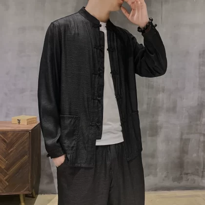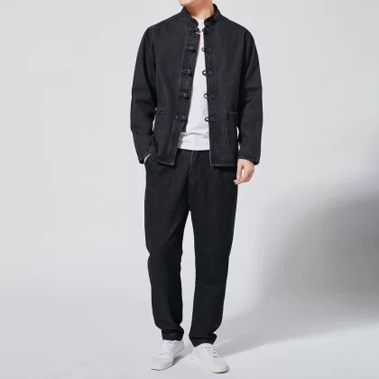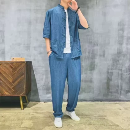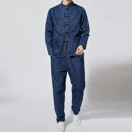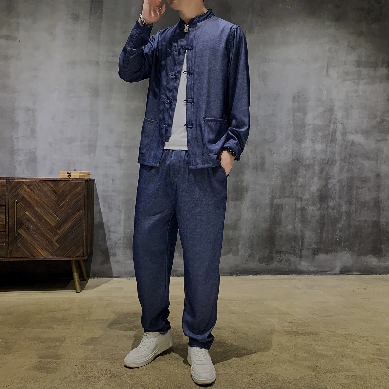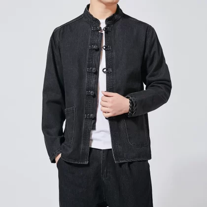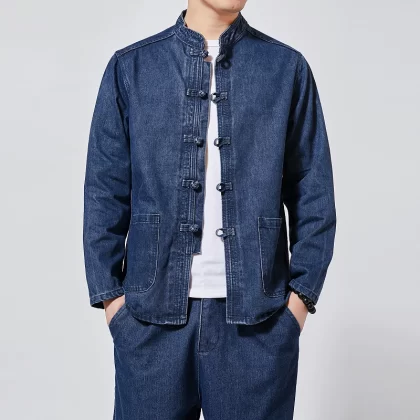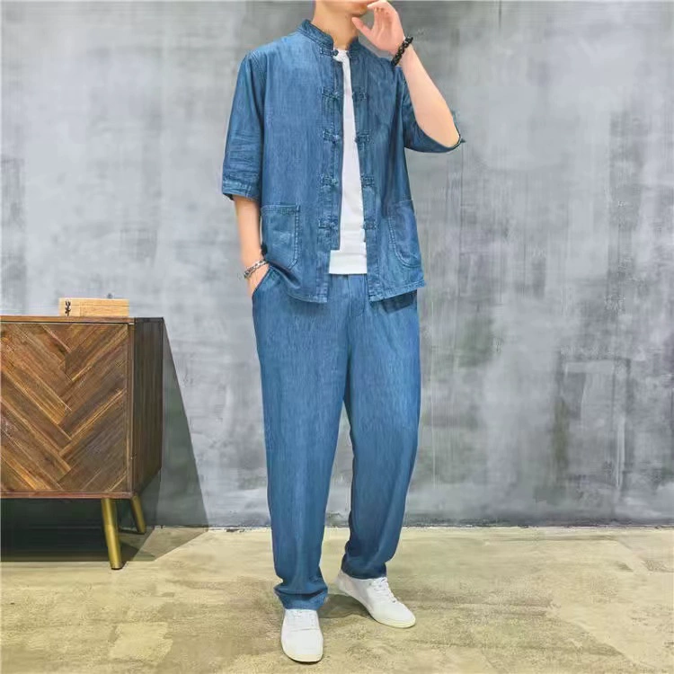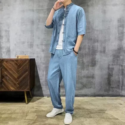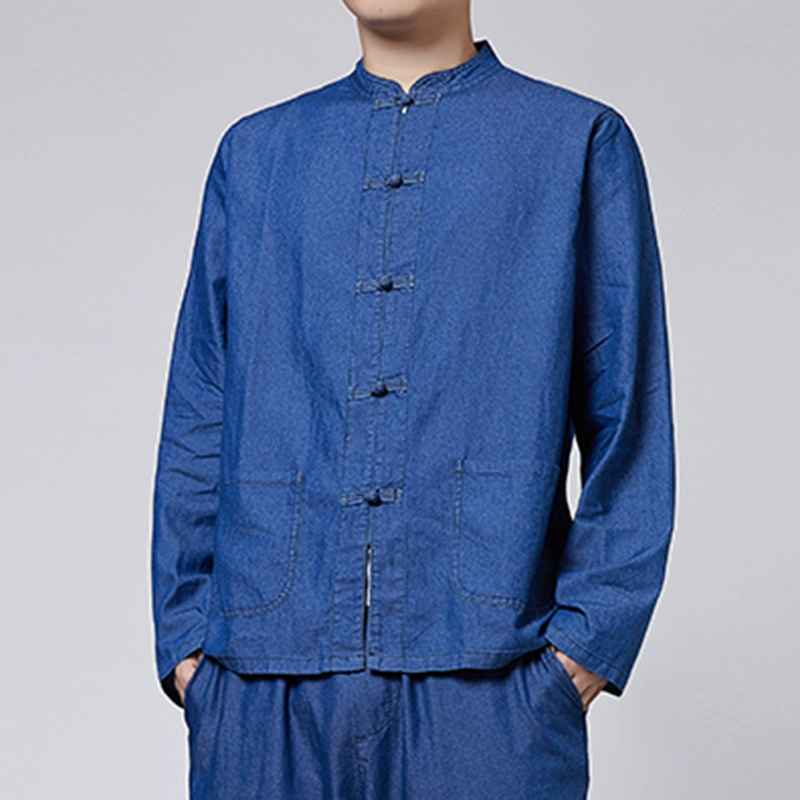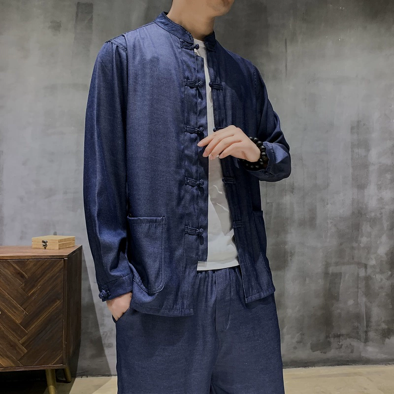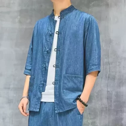 nameOriginal | Retro Chinese style denim shirt buttoned Tang suit short sleeves |