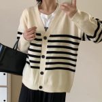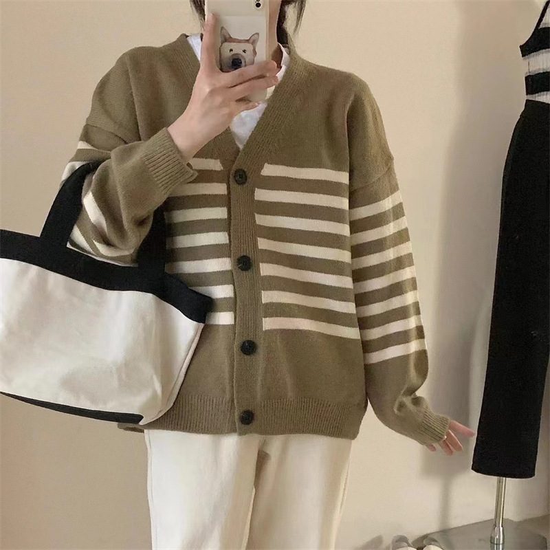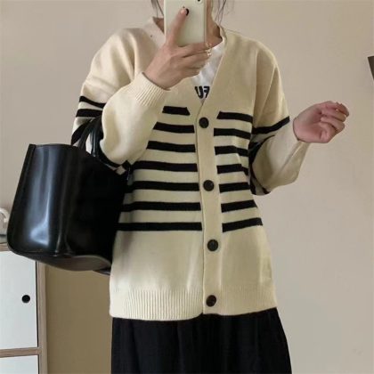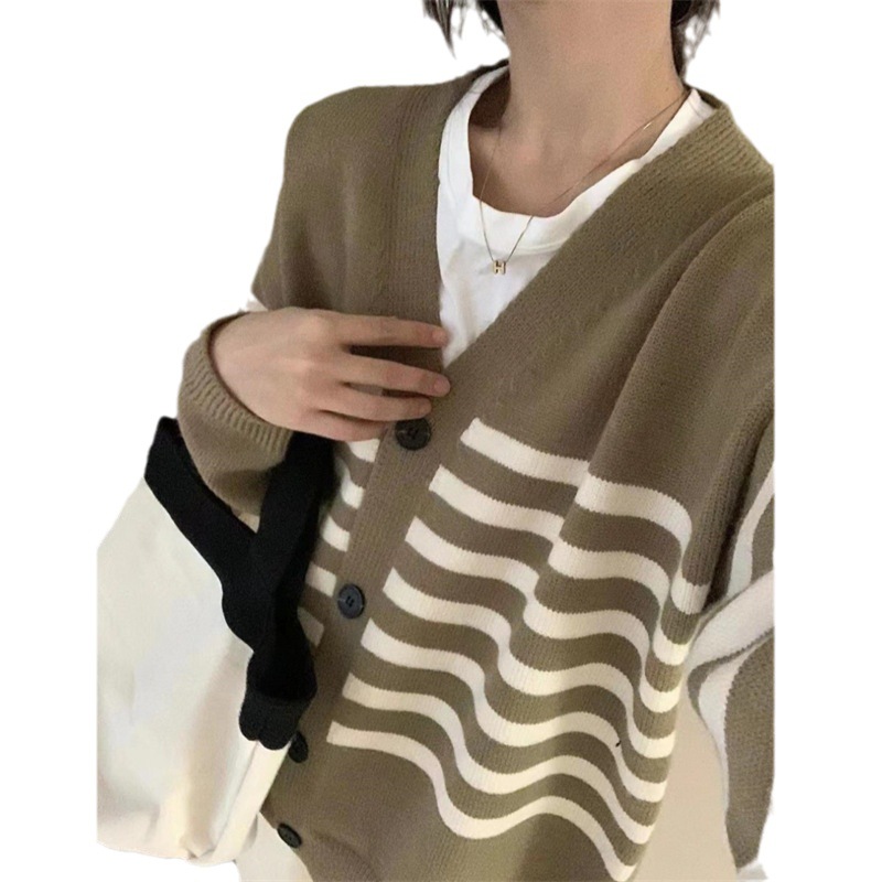 | nameOriginal | Retro contrast color striped long-sleeved knitted coat autumn and winter 2023 new outdoor V-neck single-breasted sweater cardigan |