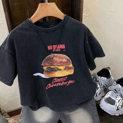 Retro distressed half-sleeved thin summer dress for boys aged 0-6