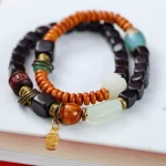 | nameOriginal | Retro ebony square double circle bracelet mixed with copper beads green sandalwood six-character mantra personalized bracelet literary and ethnic style |