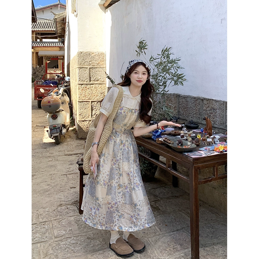 | nameOriginal | Retro floral summer temperament waist slimming suspender skirt |
