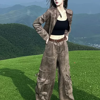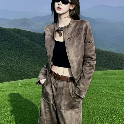 | nameOriginal | Retro high-end hot girl loose short motorcycle suit |