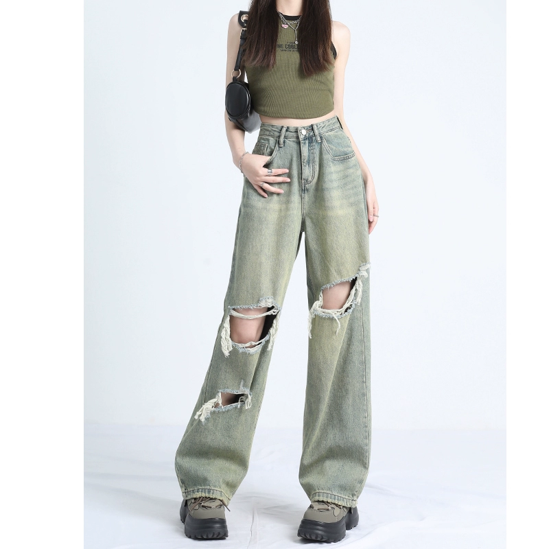 جينز ريترو عالي الخصر صيفي بثنيات رفيعة