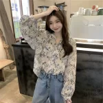 | nameOriginal | Retro Hong Kong style floral chiffon shirt women's spring French high-end chic top puff sleeve sun protection shirt summer |