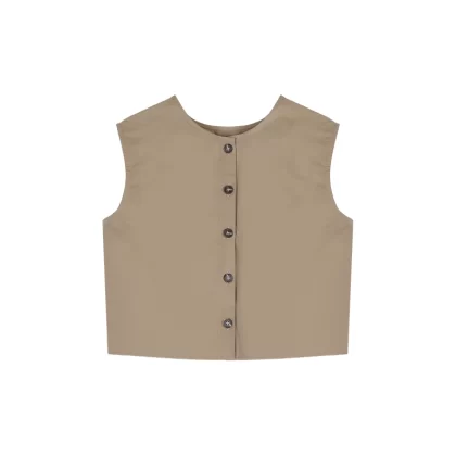 ريترو هونج كونج نمط الكاكي بلا أكمام سترة عارضة قصيرة